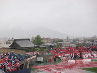 行ってきましたよ、キックオフ前の雨の中。